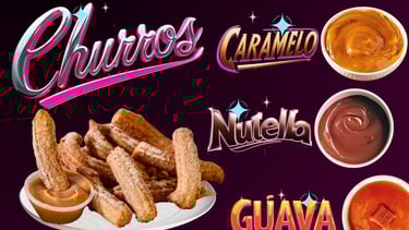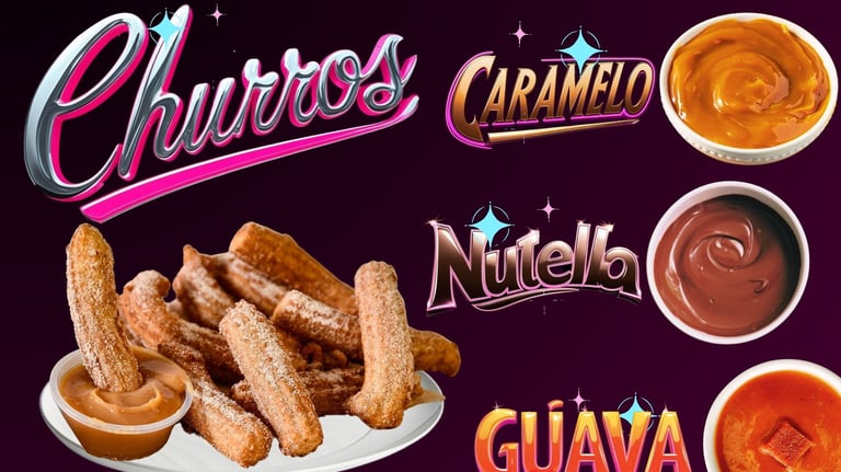 Churros crujientes con salsas para dippear: Nutella, caramelo y guayaba.