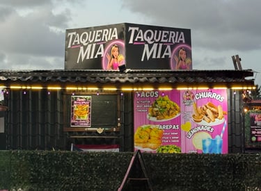 Taqueria Mia is an awesome local eatery. My favorite are the birria tacos. But everything they cook is delicious especially the arepas. Get the combo box that includes beans and nachos. They make everything from scratch including their hotsauce.🤤 Make sure you go early or order ahead, because they sell out!!